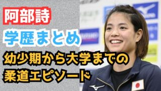阿部詩選手の学歴について詳しく知りたい方へ、本記事では彼女の幼少期・小学生時代から中学時代、高校時代、そして大学時代に至るまでの柔道人生を紹介します。阿部詩選手は現在も活躍を続けており、その輝かしい経歴はどのように築かれてきたのかを一緒に見...